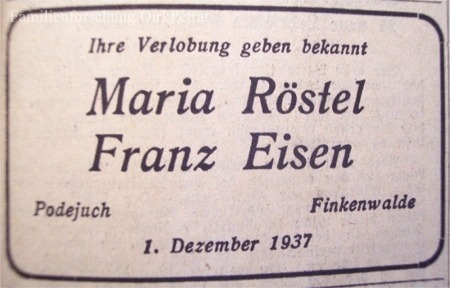 Pommersche Zeitung 01.12.1937 Maria Röstel - Franz Eisen